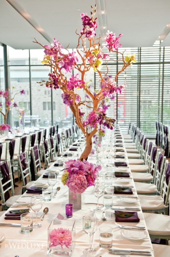Centerpieces are among the most important items that are required for decorating your wedding. They are not only used for decorating tables, but they are also used for decorating the whole place and making it inviting. Centerpieces can be created in different ways through using candles, flowers, trees, feather, birdcages, chandeliers or lanterns. Deciding the best and most suitable centerpieces for your wedding depends on your wedding venue and whether you are going to celebrate that day in a closed or open place. Although candles are perfect for creating a romantic atmosphere, they are not recommended to be used at outdoor weddings especially those which are on the beach because the wind will not let you enjoy the romantic atmosphere that is created by these magnificent candles. You can choose another idea from the following 25 breathtaking centerpieces as revealed by top online lifestyle magazine of decoration ideas.